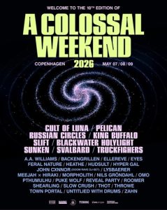 Read more about the individual bands and see which days they are playing at A Colossal Weekend’s website: www.acolossalweekend.dk